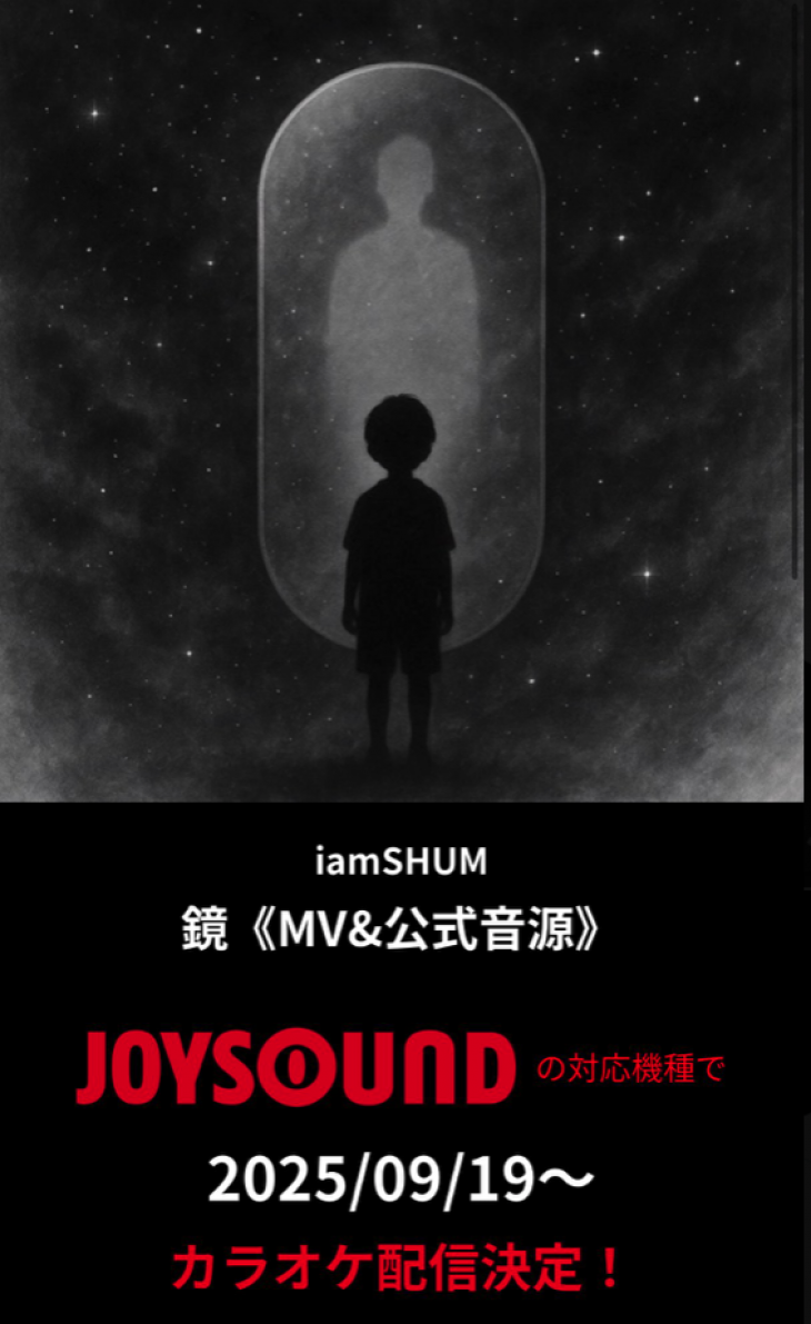 KARAOKE iamSHUM「鏡」 9月19日(金)カラオケ配信開始🎙️ 2025.09.19 公式映像(MV)&公式音源での配信!! 全国の【カラオケJOYSOUND】へ配信決定!! JOYSOUND直営店で使えるクーポンもプレゼント♫ ▼クーポンはこちら https://t.co/Zh3k3snMB6