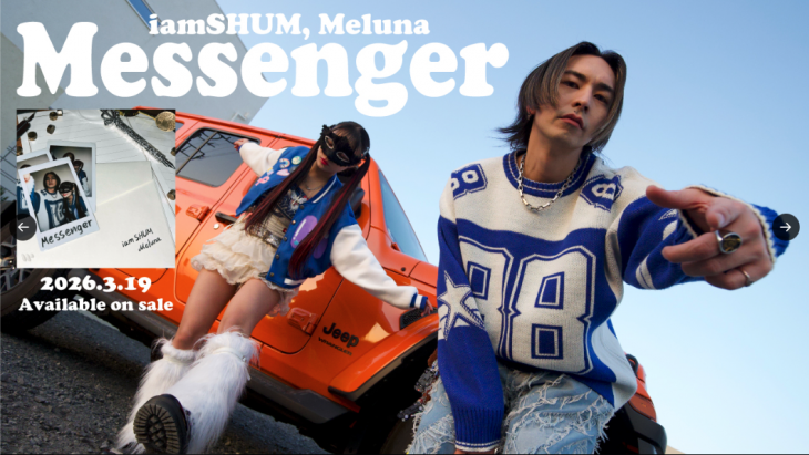 Release 2026.3.19(木) iamSHUM × メルナ 「Messenger」配信スタート!! 2026.03.19 https://warnerhypemusic.lnk.to/Messenger